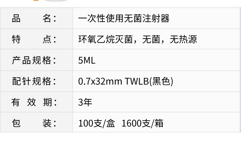 • 品名:一次性使用無(wú)菌注射器 帶針