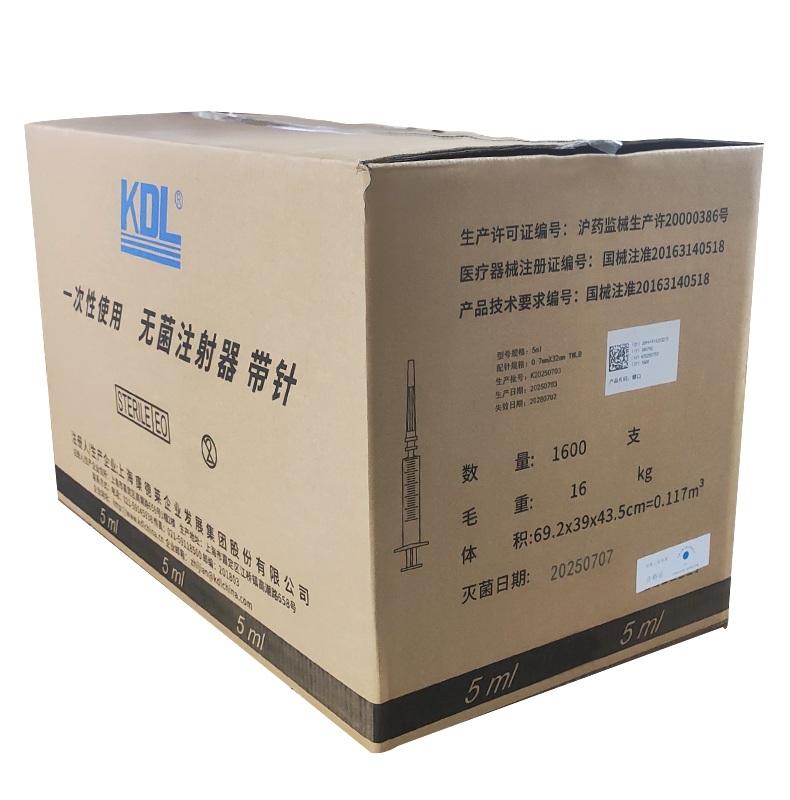 康德萊一次性使用無(wú)菌注射器平口 5ml 帶針 0.7×32mm 紙塑 100支/盒,1600支/箱,一箱起批貨號(hào):60017034