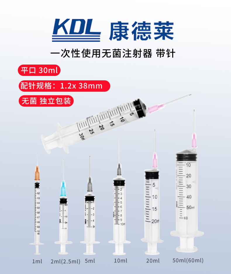 • 康德萊一次性使用無菌注射器平口 30ml 帶針 1.2×38mm