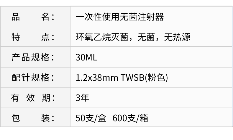 • 品名:一次性使用無菌注射器 帶針
