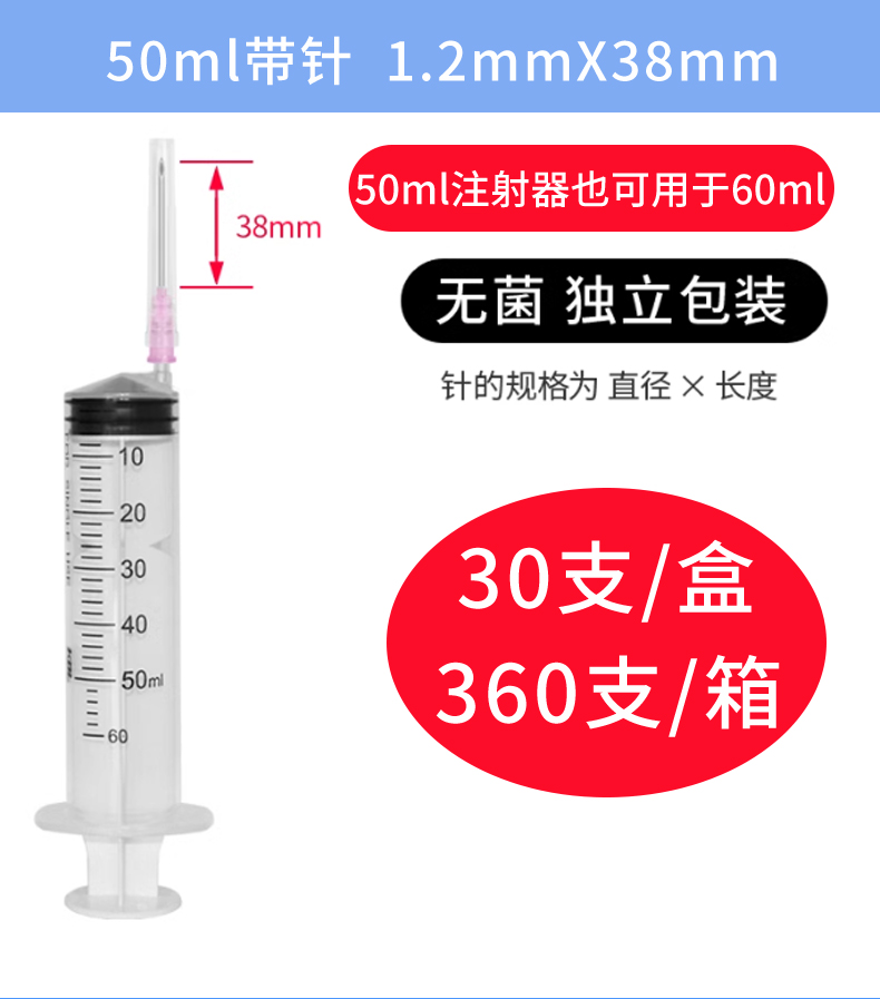 康德萊一次性使用無菌注射器平口 30ml 帶針 1.2×38mm 50支/盒,600支/箱,一箱起批貨號:60017038