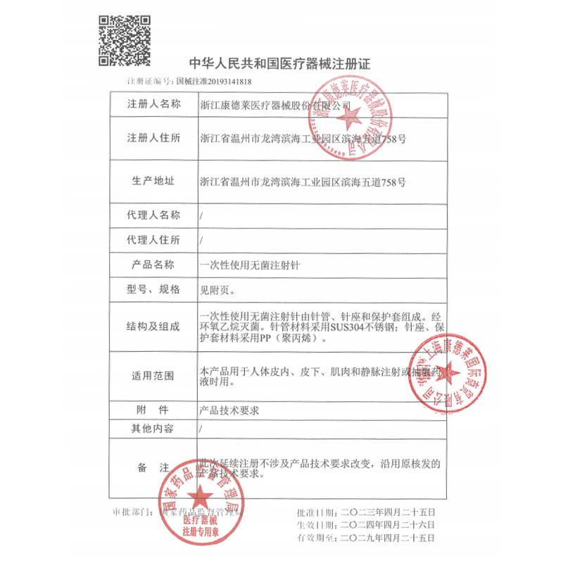 康德萊 一次性使用無(wú)菌注射針