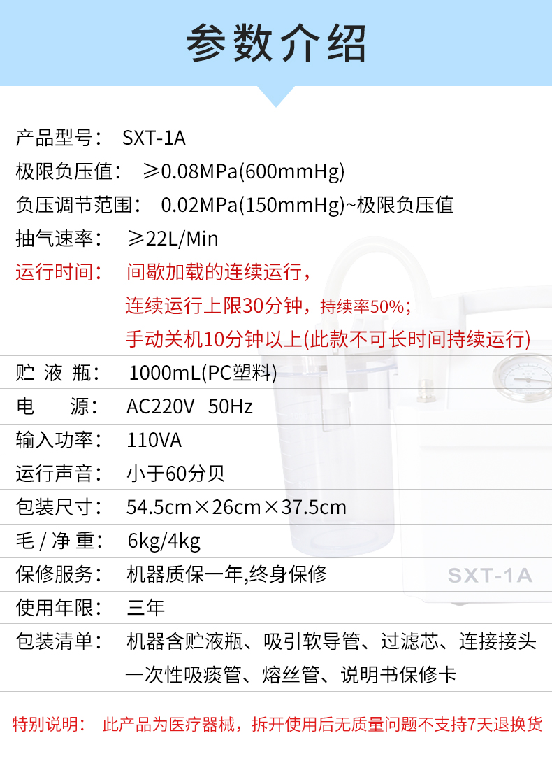 上海斯曼峰 成人吸痰器 SXT-1A 產(chǎn)品附件: